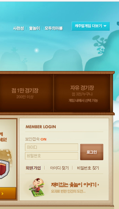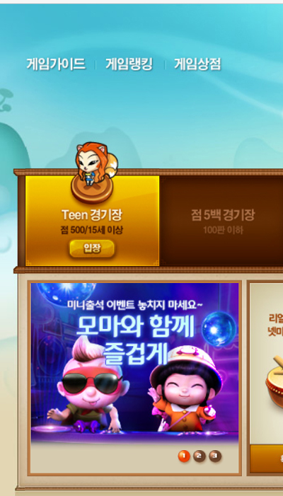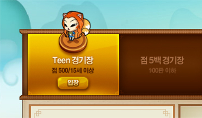 게임은 난이도에 따라서 선택하여 게임방에 들어갈 수 있습니다. Teen 경기장, 점 5백 경기장, 점 1천 경기장, 점 3천 경기장, 점 1만 경기장, 자유경기장을 선택하여 접속할 수 있습니다. 게임 머니가 처음에는 적으니까 욕심을 부려서 큰 게임 방에는 안 들어가는 것이 좋습니다. 레벨이 낮을 때는 들어가 지지도 않지만요.