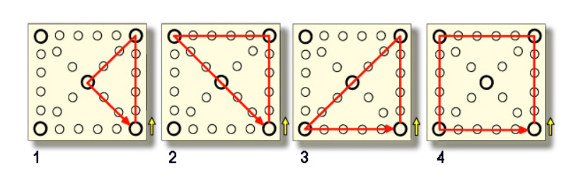 이 말들과 윷가락을 사용해서 윷판을 도는 방식은 네 가지가 있는데 윷판의 모서리에 올 경우 움직이는 방향을 정할 수 있습니다. 그리고 윷판 이동 중 상대방의 말을 잡으면 한 번 더 하는 아주 재미있는 놀이입니다.
